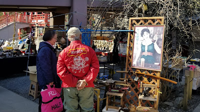 まあ、実際にどうみても廃品回収のごみとしか思えないものを集めて売ってる店もあって、いくらなんでもこんなものを買う人がいるのかねなんて思ってると、真剣にそのごみの値段を聞いてるおばあさんがおられたりして、そのごみの価値を真顔であれこれ講釈している業者のおじさんがいて、この市の楽しみ方の一環を垣間見るあれこれである。